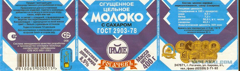 этикетка сгущенки